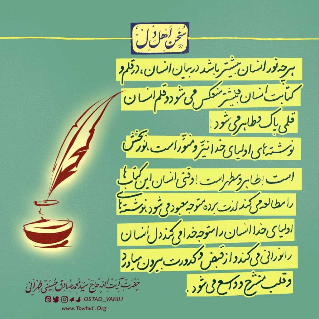 هرچه نور انسان بیشتر باشد در بیان انسان، در قلم و کتابت او بیشتر منعکس میشود و قلمش قلمی پاک و طاهر میشود!