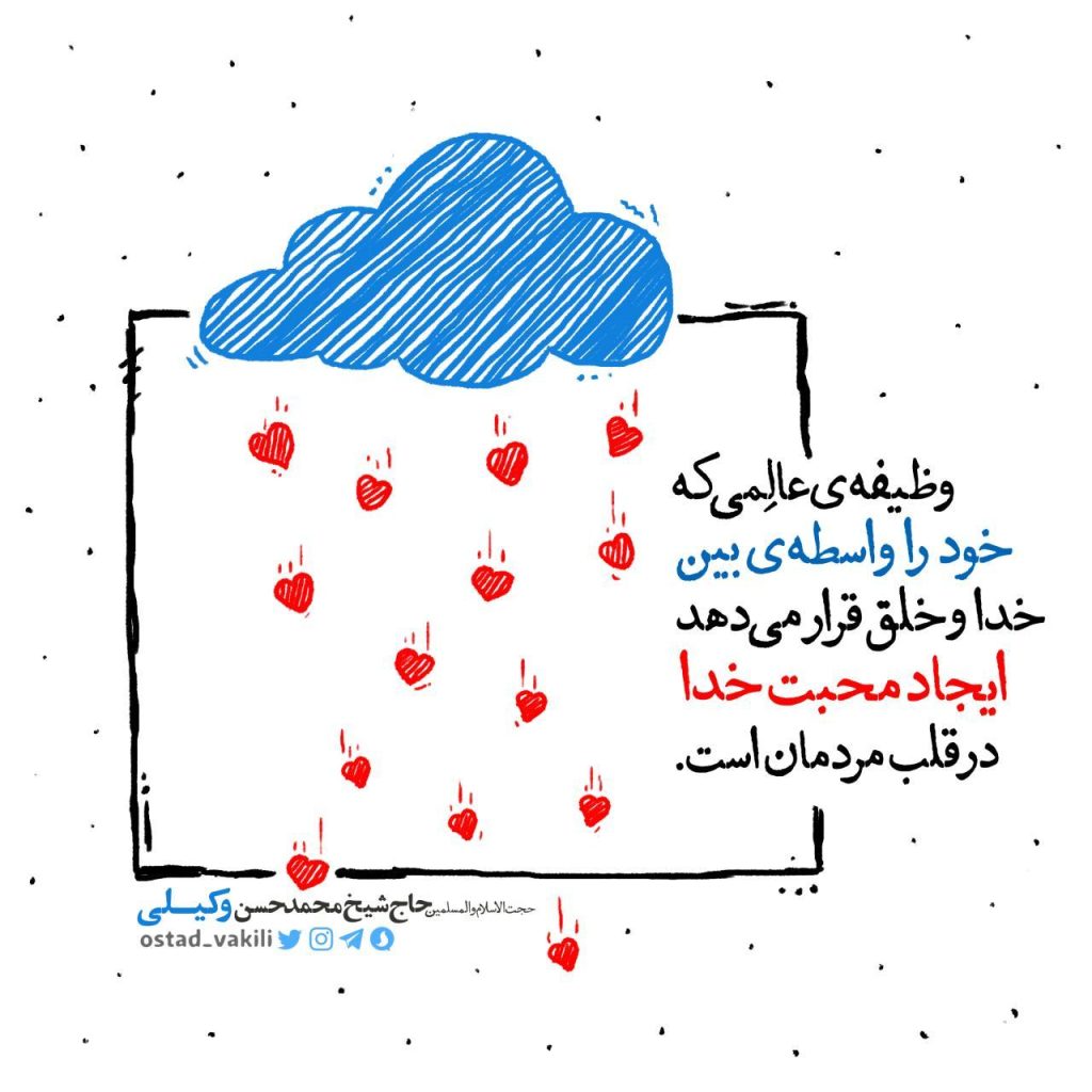 وظیفهی عالِمی که خود را واسطهی بین خدا و خلق قرار میدهد، ایجاد محبّت خدا در قلب مردمان است.